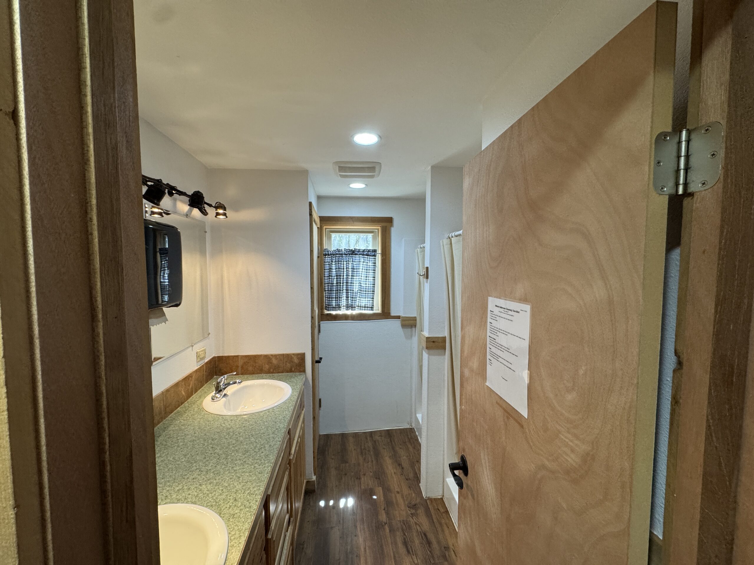 Hillside offers a recently renovated kitchen, bathroom, and gathering area. With two levels above the main floor of open-style sleeping areas, this cabin is excellent for self-contained groups of 20 people. The heat on all three levels is propane-fired heaters. The kitchen is fully stocked, including pots, pans, dishes, and utensils. There is also a bathroom on the lower level with two sinks, two showers, a separate toilet stall, and access to the shared centralized bath house in the center of the village. Have a larger group than 20? No problem, feed up to 30, sleeping extra group members in nearby cabins. Bring your own linens and towels for your stay. Hillside can also be used with The Lodge or Headquarters for interior bathroom access.