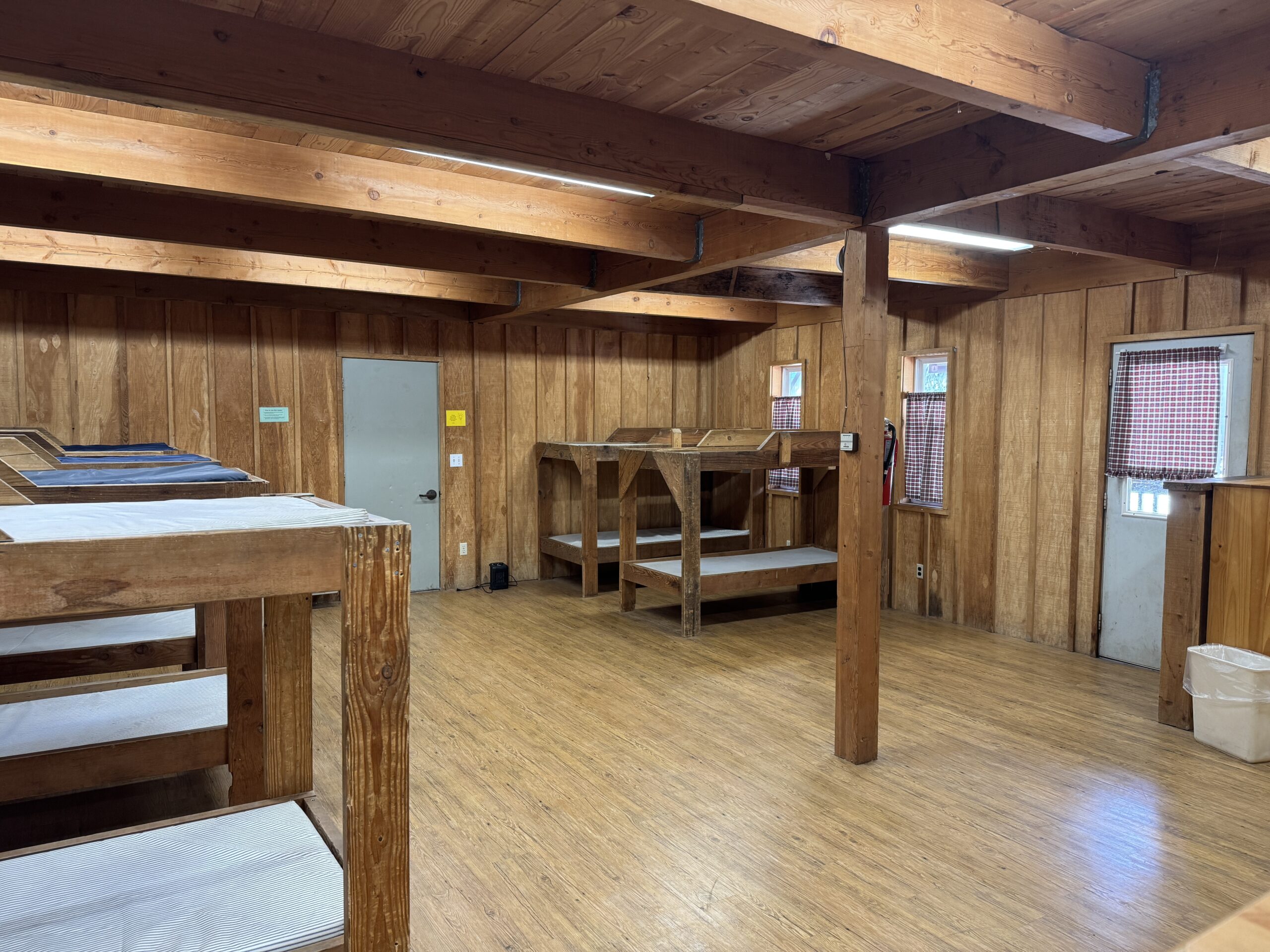 These double-stacked cabins include 7 sets of twin bunks, sleeping a total of 14 people each. They are heated with propane-fired heaters. A central bathhouse with restrooms and showers is located a short walk from the cabin. Each level is one cabin. Bring your own linens and towels for your stay.